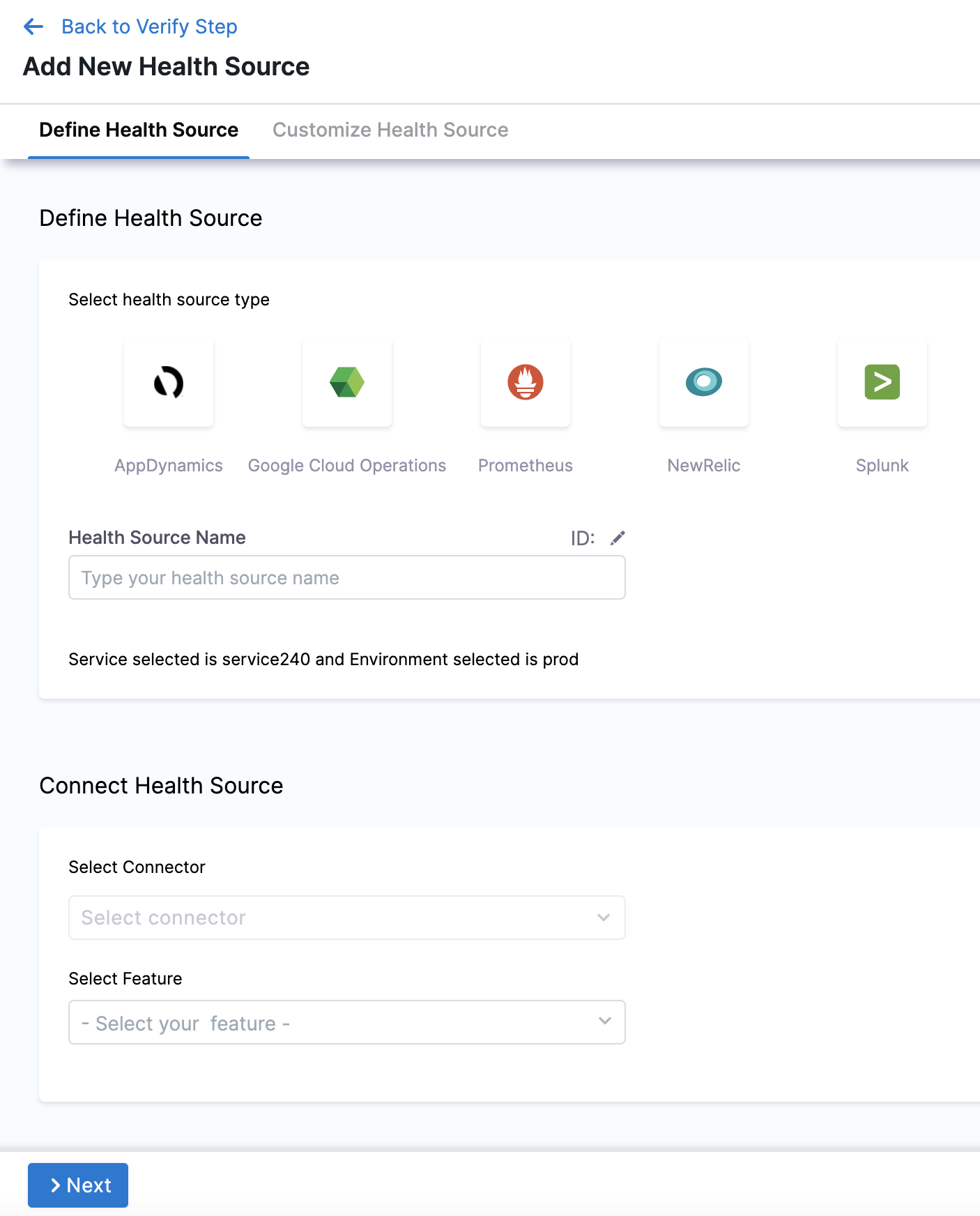 7. Click Next. The Customize Health Source settings appear.